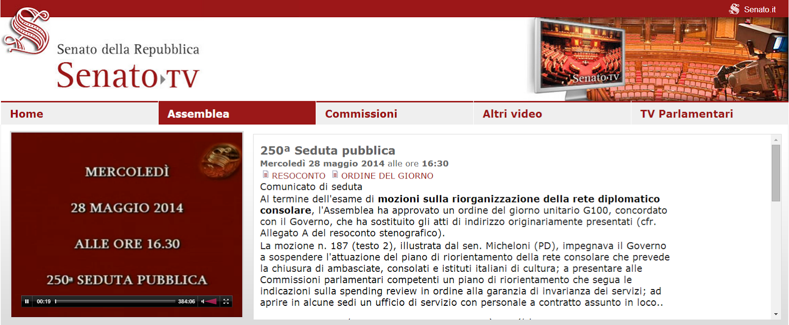 SENATO DELLA REPUBBLICA. Discussione mozioni sulla riorganizzazione della rete diplomatico consolare